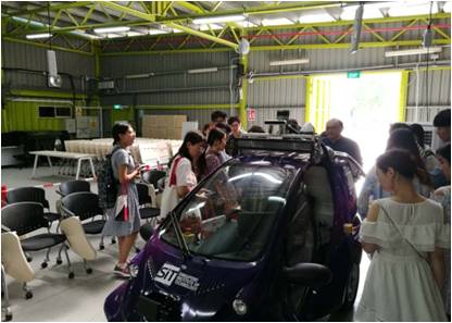 访学交流团还在裴教授的带领下参观了南洋理工大学的四个主要实验室。在射频与电子实验室中, 团队成员们在实验室老师的带领下参观了电线电路板的展示,还近距离走近了天线屏蔽演示实验室,深入了解了天线的工作原理;在交通系统实验室中,在实验室老师的详细介绍下,团队成员们也详细了解交通系统的仿真过程;在无人驾驶实验室中,许多学生第一次真正“触摸”到了无人驾驶汽车;在嵌入式系统实验室中,团队成员们接触到了自己学过的单片机领域的知识,也被单片机所能做到的强大应用所震撼。