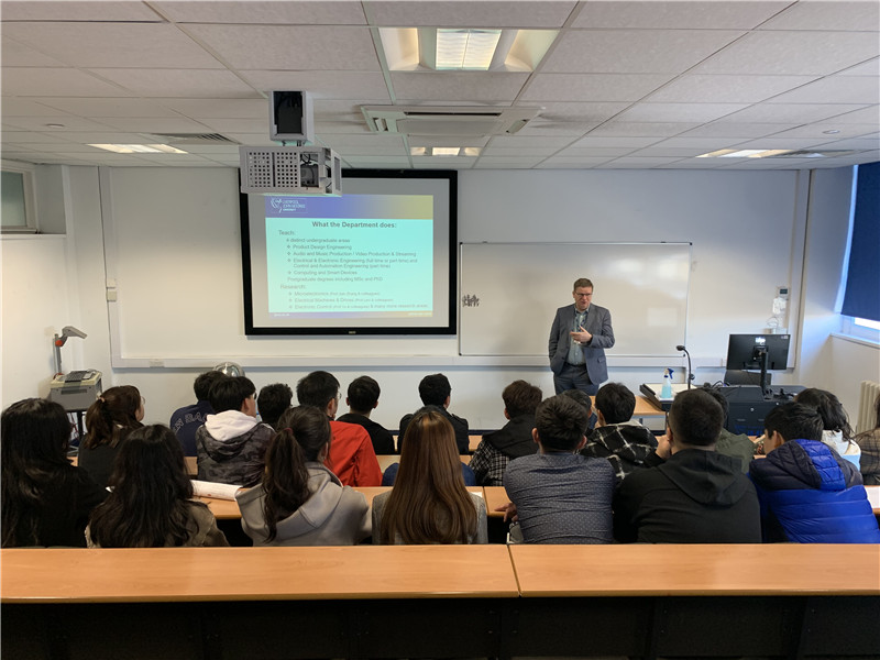 接下来交流访学团从伦敦出发前往利物浦,在利物浦约翰摩尔斯大学进行交流访问。来自利物浦约翰摩尔斯大学电子与电气工程系的主任John Marsland为团队成员介绍了利物浦约翰摩尔斯大学的发展历史以及他们的研究生、博士生项目,为团队成员们申请留学以及未来科研道路规划上提供了帮助。此外,来自利物浦约翰摩尔斯大学电子与电气工程系的老师Qian Zhang和Dingli Yu还带领团队成员参观了他们的实验室,为团队成员介绍了他们的研究方向并用浅显易懂的方式为同学们描述了研究原理,团队成员们在实验室亲自动手参与了老师们的科研项目,实验室研究团队的紧张氛围与对知识的渴望也深深感染了团队成员们。
