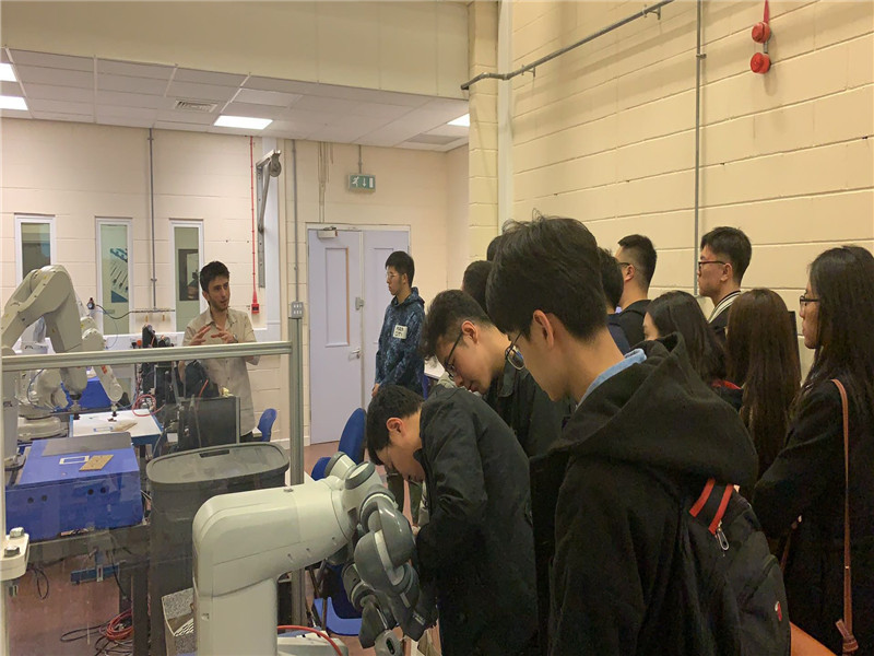 接下来团队成员们前往曼彻斯特,在两所学校进行交流访学。在索尔福德大学访问期间,来自索尔福德大学自动系统和先进机器人研究中心的老师Theo Theodoridis为大家介绍了四种机器人,其分别是进行铣槽工作的库卡机械臂、基于气动肌肉的仿生机械臂、基于人工智能的ROS机器人以及帮助行动不便的老人的助老机器人。老师介绍道每个机器人各司其职,根据需求集成不同的产品,这样将大大促进机器人的产业化发展。最后,老师还为我们介绍了一间智能家居房间,这间“神奇”的房间看着普通,实际处处都是智能机械化!团队成员们简单了解到了仿生机械的研究原理,并且被其应用深深震撼。