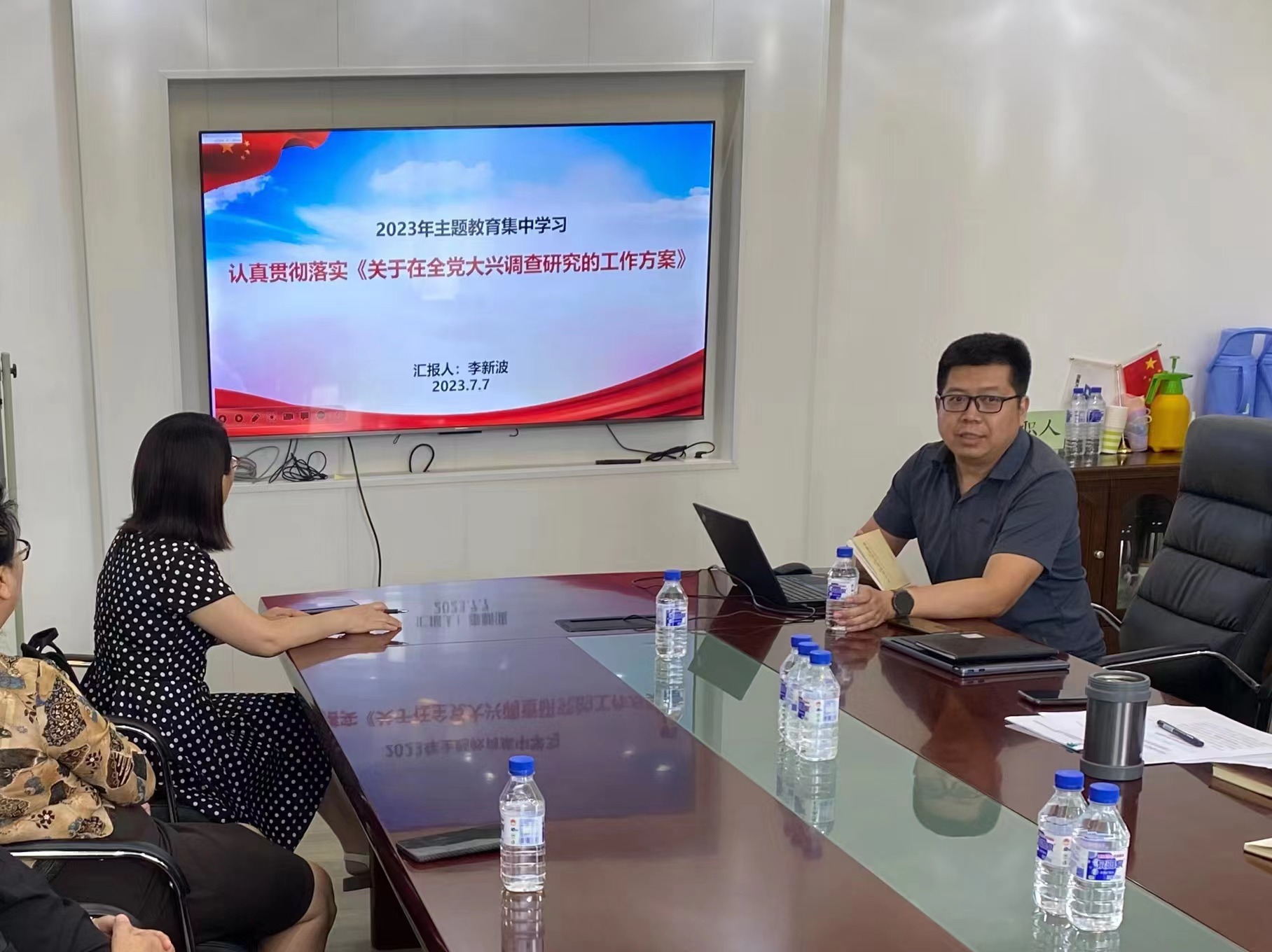 李新波以“认真贯彻落实《关于在全党大兴调查研究的工作方案》”为题,讲授了在全党大兴调查研究的重要意义、调研内容以及怎样用好调查研究这个传家宝。