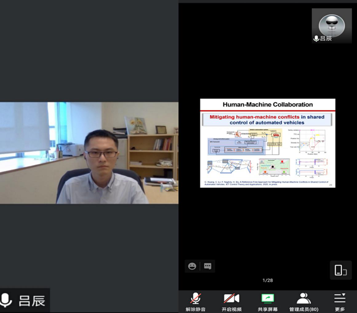 On October 22, 2020, Lv Chen, Assistant Professor and Doctoral Supervisor of Nanyang Technological University, Singapore, gave a webinar for the College of Communications Engineering (CCE) via a video link. The webinar was presided over by Professor Guo Hongyan and was attended by CCE teachers and students.