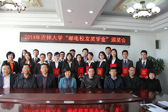 Pu Shaohua announced the decision of the Jilin University 2014 Posts and Telecommunications Academy Alumni Scholarship Award. Alumni and leaders issued certificates to 17 deserving students.