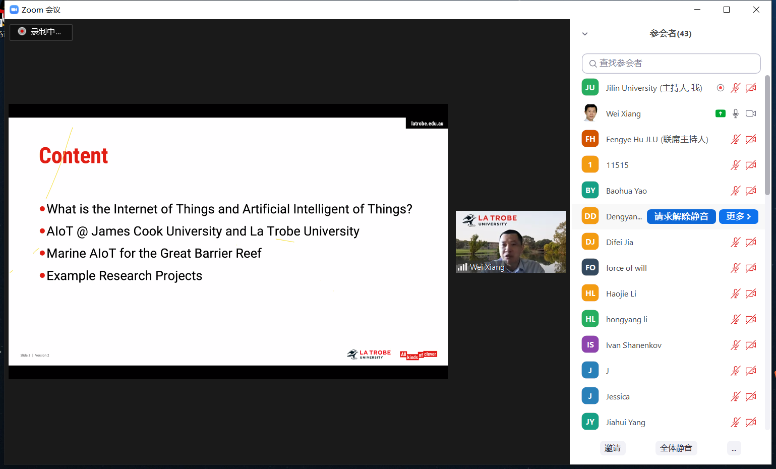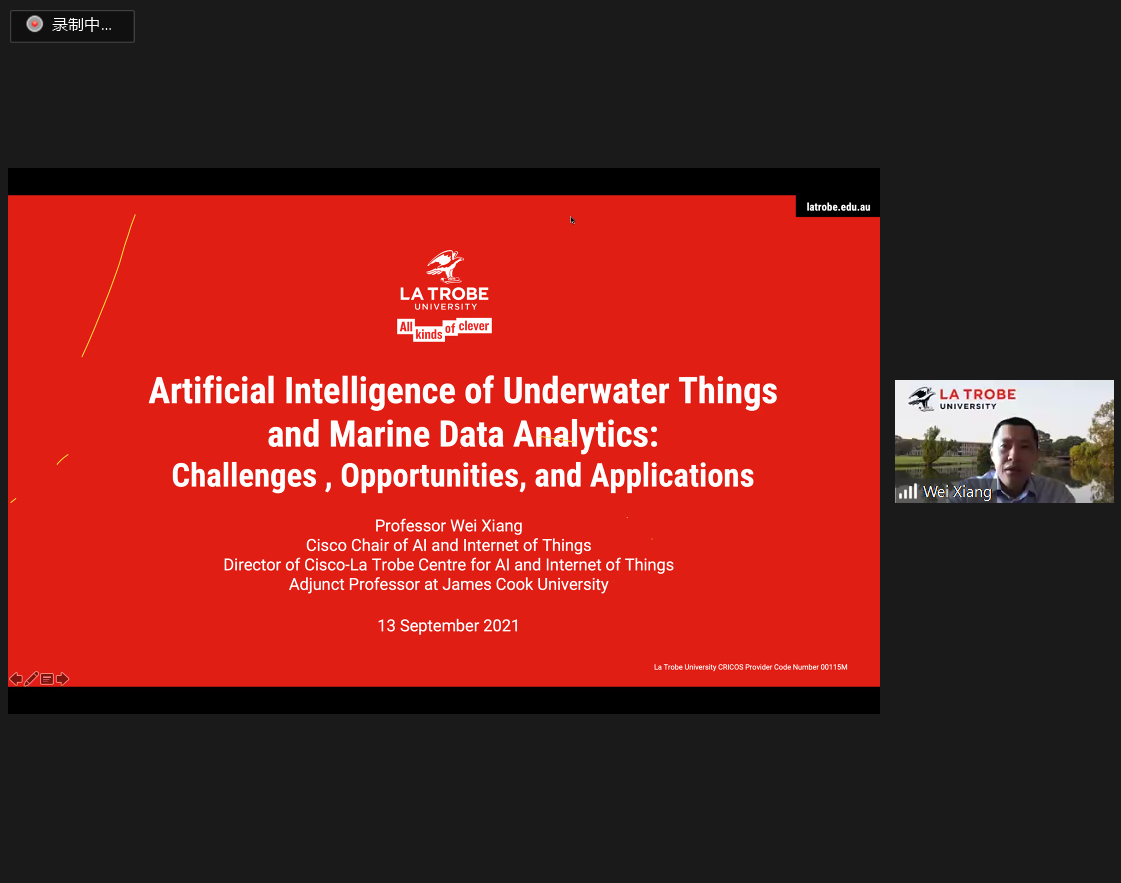 Professor Wei Xiang delivered an academic report with the theme of Artificial Intelligence of Underwater Things and Marine Data Analytics. The report discussed the application of AIoT technology in the field of underwater IoT and marine data analysis. It took the Great Barrier Reef in Australia as an example to demonstrate how AIoT technology can be used to overcome huge challenges, and advance research on monitoring and sensing harsh marine environments.