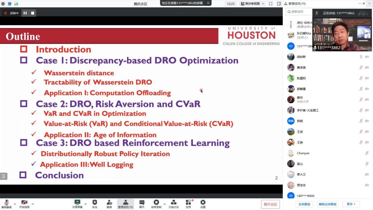 师生开展题为“Distributionally Robust Optimization and Machine Learning for Communication Networks”线上学术交流活动。交流会由胡封晔教授主持。