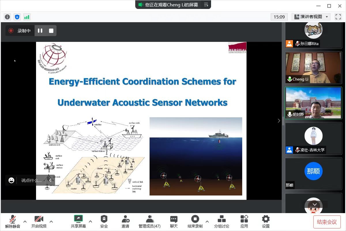 师生开展题为“Energy-Efficient Coordination Schemes for Underwater Acoustics Networks”线上学术交流活动。交流会由胡封晔教授主持。