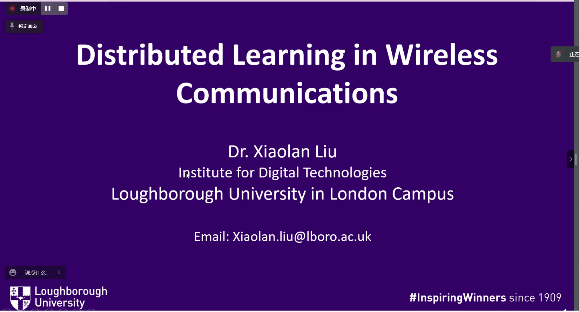 2021年12月31日,英国拉夫堡大学(Loughborough University)刘小兰博士应邀为学院师生做学术报告并进行学术交流,报告的主题是“分布式学习在无线通信领域中的应用”。本次学术交流旨在进一步提升研究生科研水平和创新能力,提升国际化视野,鼓励研究生在通信领域开展创新研究,促进学科交叉融合发展,提升科研育人效果。本次学术报告由黑料社 胡封晔教授主持,采取线上线下相结合的形式,学院师生近五十人参会。报告会后,学院师生针对分布优化相关学术问题与刘博士展开交流和学术研讨,活动在与会师生的热切讨论中圆满结束。
