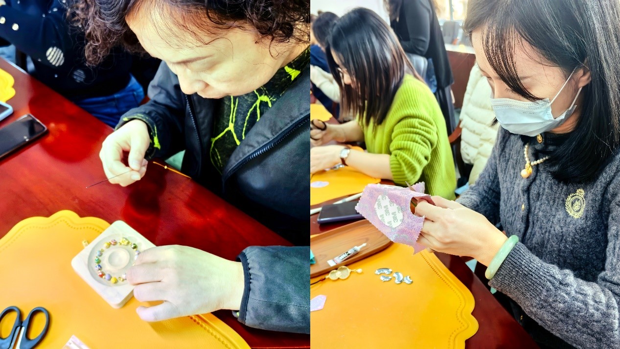 妇委会成功举办“坠玉凝心意,串饰悦时光”非遗手工制作活动。全院20余位女教职工参加了此次活动,活动由学院副院长、妇委会主任王雪主持。