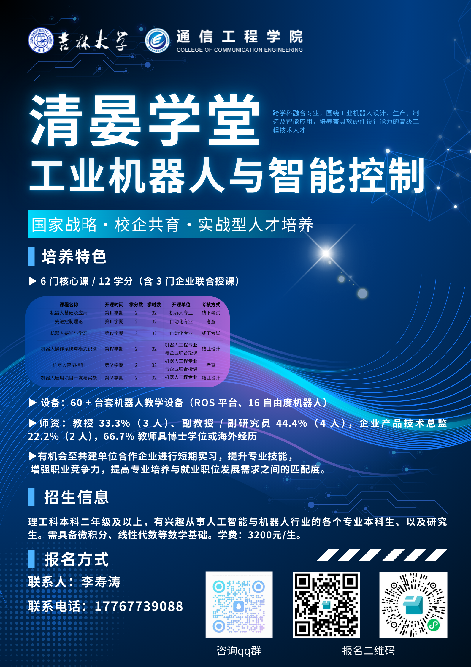 学员在完成学习前,修满本培养方案规定的12个学分,颁发“工业机器人与智能控制微专业”证书